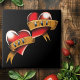 Coeurs rouges tatoués traditionnels avec des bannières Maman et Papa sur les deux coeurs dans un arrière-plan de noir.