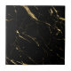 Un luxueux motif moderne de marbre en noir et faux or à contraste élevé crée de l'intérêt et de l'intrigue sur ce carrelage en céramique. Art et design © 1201AM Design Studio | www.1201am.com