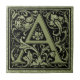 La première lettre de la lettre A de monogramme de calligraphie de typographie initiale décorative avec du charme de style dans le noir au-dessus de la doublure vintage de Livre vert d'avocat avec outre du ginkgo biloba blanc part.