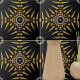 Voici un magnifique design contemporain en céramique qui respire l'élégance. Cette création exquise présente des formes géométriques complexes et délicatement composées, ornées d'une finition en faux or lustré. Placé sur un fond noir sophistiqué, ce carrelage décoratif ajoute sans effort une touche de sophistication moderne à tout espace. Elevez votre environnement avec ce mélange captivant d'art et de style.