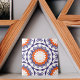 Belle céramique élégante de style méditerranéen aux formes géométriques bleu, blanc et orange.