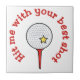Boule de golf avec une étoile jaune sur un tee rouge.