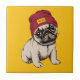 Caractéristiques de conception ce un carlin mignon de chiot de hippie dans un casquette rouge de calotte.