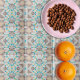Décor moderne et unique en son genre, avec un motif sans couture aux formes géométriques dans les tons marron, beige, turquoise, vert et orange.