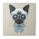 Caractéristiques de conception ce qu'un chat siamois s'est habillées dans une paire bleue des verres et de la cravate d'arc checkered.