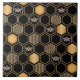 This contemporains objets a geometric gold color beehive pattern, bumblebees, and a black color background.