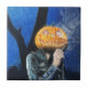 Un carreau éffrayant d'Halloween avec l'oeuvre pastel "The Headless Biker". Cette illustration montre un fantôme à la tête de citrouille portant une veste en cuir fumant une cigarette sur une nuit froide et sombre d'octobre. OEuvre originale : Pastels sur papier. Copyright Dominic A. White. Tous droits réservés.