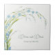 Carrelage en céramique avec un élégant bouquet de fleurs bleu clair-me-pas avec des feuilles vert clair et des tiges courbées, couleurs pastel naturelles printemps ou été, un bouquet de lumière romantique des fleurs sauvages. Aquarelle numérique botanique. Belle botanique de fleurs carreaux céramique. Oublie-Moi-Pas Collection.
