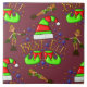 Un groupe d'elfes de Noël (Père Noël Helpers) qui jouent et sont malicieux. Ils jouent avec un casquette rayé géant rouge et vert et des chaussures pointues vertes et rouges. Cette jolie tuile de Noël ferait une grande décoration de Noël pour les enfants cette année.