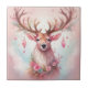 Carreau Noël rose : Renne avec une fleur rose