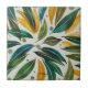 Folhas feitas em aquarela, espalhadas umas das outras, em cores verdes e amareladas, simulando a chegada do outono