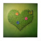 Belle illustration romantique : pelouse en forme de coeur avec fleurs et papillon sur un arrière - plan grungy vert.