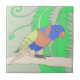 Ce carrelage en céramique colorée présente mon design simple d'un petit perroquet sur une branche devant des fougères vertes. adorable pour ajouter un soupçon d'exotique à une chambre, ou pour donner en cadeau.