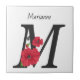 monogramme personnalisé modifiable M texte rouge fleur floral beige papier artisanal