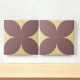 Carrelage en céramique pétale bordeaux et jaune, au design moderne du milieu du siècle, idéal pour un décor saisonnier d'inspiration vintage.