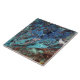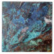 Tuile en céramique qui a un gros plan d'une section de pierre minérale malachite dans les tons bleu, vert et cuivre. Un joli ajout à toute décoration de maison.