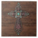 Plaque croisée fleurie de mur. Studios de Radenbrea de © chez Zazzle. Cette croix fleurie imprimée a un coeur flamboyant là-dessus, avec des rouleaux et des gemmes rouges. L'arrière - plan de la plaque est dans un regard en bois imprimé. Cette plaque de mur fera l'art de Grande Muraille en n'importe quel décor.