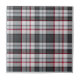 Plaque de tartan texturée grise avec fines bandes rouges et bleues.