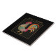 Ce coq coloré se trouve au milieu de ce carrelage élégant. Noir et multicolore. Texte et bordure de couleur dorée. Texte : "Er-Er-Er-Er-Er-Err". Customisez cet objet ou achetez comme prévu. Image stock freepik.com