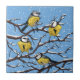Illustration vectorielle dessinée à la main de 4 mésanges bleus en hiver