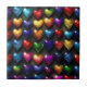 Rangées colorées de carreaux de coeurs.