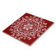 Ce mandala blanc est assis sur un arrière - plan rouge foncé. La couleur est profonde et chaude. Partie de la collection Losonieth Mandala.