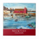Conçu sur la base d'une peinture acrylique de Rockport Harbour dans le Massachusetts par Farida Greenfield. Une belle capture du port de Rockport, avec ses bâtiments colorés, vue sur la jetée et les bateaux amarrant sur le port. Rockport est une ville balnéaire du comté d'Essex, Massachusetts, États-Unis. La conception a un cercle rouge foncé sur le côté extérieur et des textes qui peuvent être personnalisés sur le dessus et le bas.