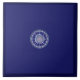 Dessin d'un vitrail d'une ancienne église européenne : une fenêtre rose, avec des touches de couleurs variées, dont des tons bleus, sur un arrière - plan bleu marine. Inposition de strass bleus. Ce motif est également disponible en rouge cardinal dans mes collections "cardinal rouge rosace".