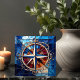 Le Rose Compass avec Scroll Bordure en verre teint Look Tile présente le design Rose Compass en blues et argent sur un arrière - plan de blues, ambre et rouge avec une élégante bordure de défilement en argent antique. Ce carrelage a un style de vitrail. Il y a beaucoup d'applications merveilleuses pour ces magnifiques tuiles. Disponible en 2 tailles 4,25 po x 4,25 po et 6 po x 6 po.