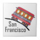 Trolley rouge emblématique grimpant sur une colline à San Francisco