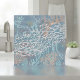 This coastal ceramic tile design features a lively school of stylized white fish swimming across a muted palette of seafoam, driftwood beige, dusty teal, and soft slate blue. The flowing, hand-drawn lines create a sense of movement, while the abstract coral shapes and watery textures add depth and a calm, ocean-inspired atmosphere. Perfect for beach-inspired décor themes, it brings a touch of underwater serenity to any room. Note: design may contain generative content