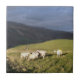 Un dessin photographique de mouflons gallois qui broutent sur la colline ensoleillée au moment où la pluie est sur le point de commencer.