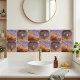 Transform your living space with the mesmerizing allure of this shimmering mosaic gradient ceramic tile. The interplay of colors, from deep bronze and fiery orange to soft lavender and pale lilac, creates a dynamic visual experience. Each small, irregular tile reflects light beautifully, adding a luxurious and ethereal glow to your walls. This design is ideal for creating a statement backsplash in your kitchen or bathroom, or for adding a unique artistic flair to a fireplace surround. It's a beautiful way to bring the captivating energy of abstract art into your home.