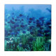 Ramenez des souvenirs de snorkeling pendant vos vacances avec une photo sous-marine saisissante d'un banc de poissons tropicaux bleu discus dressé contre un arrière - plan de corail vert.