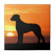 Un Rhodesian majestueux Ridgeback se silhouette par un coucher du soleil Pacifique intense. La palette de couleurs d'or vibrante est une déclaration audacieuse en décor à la maison. Des sentiments personnels peuvent être ajoutés utilisant l'outil customisant des textes. Deux tailles de tuile sont disponibles, et des cadres ou les boîtes en bois de souvenir peuvent être commandés pour augmenter votre carreau de céramique. Un cadeau distinctif pour tout amoureux des chiens, ou un choix souple pour des trophées de club.