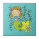 Une sirène de sourire d'une chevelure brune et une étoile de mer jaune nagent parmi l'algue, une conception qui est mignonne et colorée pour les filles qui aiment l'océan et les sirènes ! Le T-shirts, les combinaisons, les bavoirs, les couvertures, les linges de bébé, les cartes, les autocollants, les sacs, les tasses, les porte - clés, les coussins, les horloges murales, et les un bon nombre de sirène d'autre sirène embrayent !