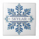 Snowflake pattern blue & white holiday custom name ceramic tile. You can edit the text in the center, change the font, change the color, size, etc. Gift these tiles as custom name coasters for each family member, for friends or teams, use them for home accents on your bookshelves, in your living rooms and bedrooms, or as mosaic wall art with other tiles. Or leave the central space empty, and use as decorative backsplash ceramic tiles.