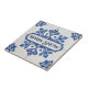 Snowflake pattern blue & white holiday custom name ceramic tile. You can edit the text in the center, change the font, change the color, size, etc. Gift these tiles as custom name coasters for each family member, for friends or teams, use them for home accents on your bookshelves, in your living rooms and bedrooms, or as mosaic wall art with other tiles. Or leave the central space empty, and use as decorative backsplash ceramic tiles.
