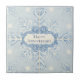 Snowflake pattern blue & white holiday custom name ceramic tile. You can edit the text in the center, change the font, change the color, size, etc. Gift these tiles as custom name coasters for each family member, for friends or teams, use them for home accents on your bookshelves, in your living rooms and bedrooms, or as mosaic wall art with other tiles. Or leave the central space empty, and use as decorative backsplash ceramic tiles.