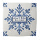 Snowflake pattern blue & white holiday custom name ceramic tile. You can edit the text in the center, change the font, change the color, size, etc. Gift these tiles as custom name coasters for each family member, for friends or teams, use them for home accents on your bookshelves, in your living rooms and bedrooms, or as mosaic wall art with other tiles. Or leave the central space empty, and use as decorative backsplash ceramic tiles.