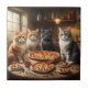 Sur La Photo, Quatre Chats Sont Assis Autour D'Une Table Avec Une Pizza Prêt À Manger.