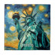 Ce design montre un closep de la Statue de la Liberté et est réalisé dans un style impressionniste avec un clin d'oeil vers la Starry Night de Van Gogh.