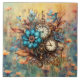 Ce magnifique carrelage décoratif présente des fleurs de style Steampunk générées par l'IA et des garde-temps au centre sur un arrière - plan fleur sauvage jaune. Coordination de la cuisine et des articles de table disponibles.