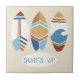 SURF ! Je d'ici juin Erica Vess. Dispose de trois planches de surf avec des designs différents et amusants et "Surf Up" phrase au bas de l'image.