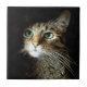Carreau Tabby Chat Aux Yeux Verts Isolé Sur Noir