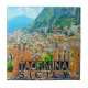Vue emblématique de la ville de Taormina, en Sicile (Italie), à flanc de colline.