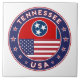 Badge du Tennessee avec drapeau du Tennessee et drapeau des Etats-Unis couleurs, forme arrondie. Emblème du Tennessee. Sceau du Tennessee. Collection USA Etats.