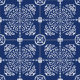 Belle conception originale dessinée à la main sur un arrière - plan bleu marine avec motifs blancs style aquarelle, symétrique, mandala.