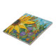 Carrelage d'art joyeux. Art. Tournesol peint dans jardin fleuri lumineux. Dans le style Van Gogh.