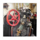 Les conducteurs de train à vapeur ont vue sur la plaque de marche d'un train à vapeur. Magnifiquement restauré à son état historique d'origine.Le laiton brillant et le rouge vif de certaines commandes est un bel exemple de l'habileté des gens qui donnent volontairement leur temps à la préservation de ces petits trains. Pays de Galles Royaume-Uni.
